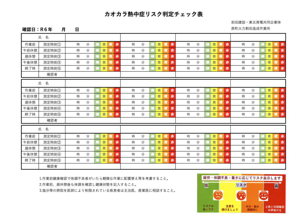 - 作業員同士でコミュニケーションが活発になり、暑熱対策の意識向上が図られた